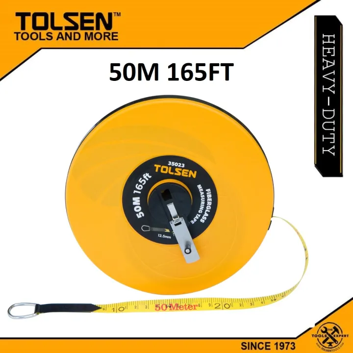 Heavy-duty 100m fiberglass measuring tape.