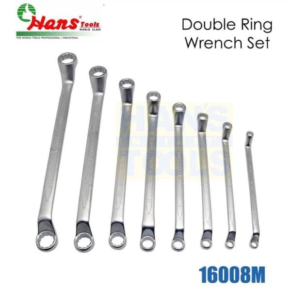 HANS 8-piece ring spanner set covering sizes 6–22mm for precision work.