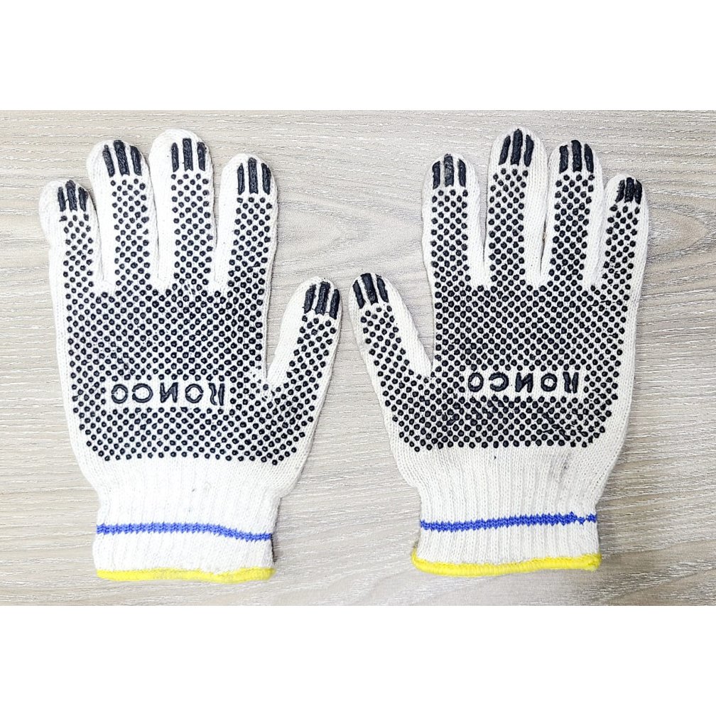 cotton dotted hand gloves color grey and yellow black dotted  (24pc)Cotton Dotted Hand Gloves Color Grey and Yellow – Black Dotted  (24PC)