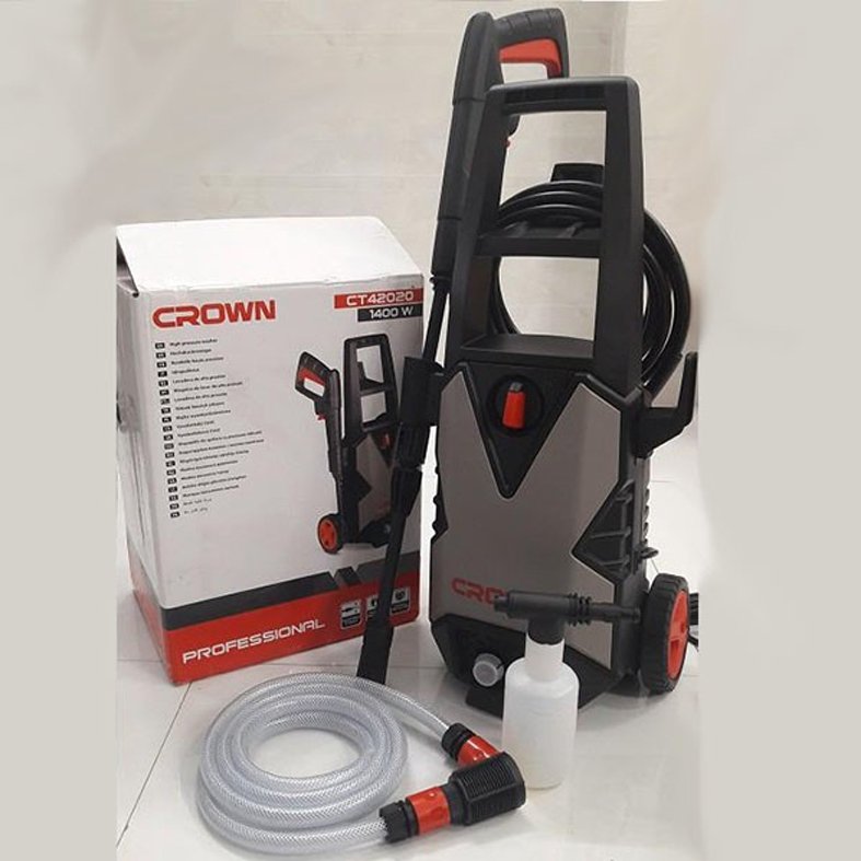 Crown 1400W washer suitable for household and vehicle cleaning.