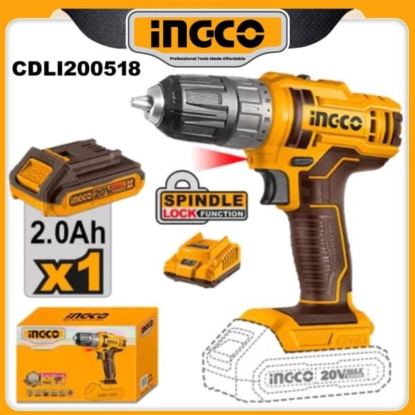 INGCO 20V Cordless Drill 45 N.m for medium-duty DIY and professional use.