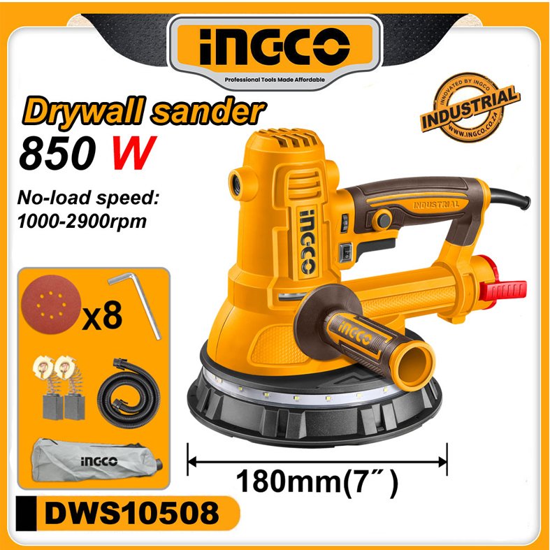 INGCO 850W Electrical Dry Wall Sander 180mm for medium-scale wall finishing.