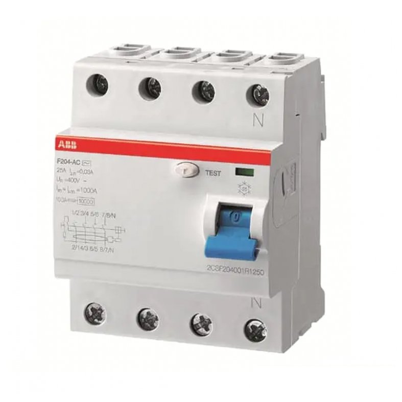 ABB 4P RCCB 80A 30mA for leakage protection.