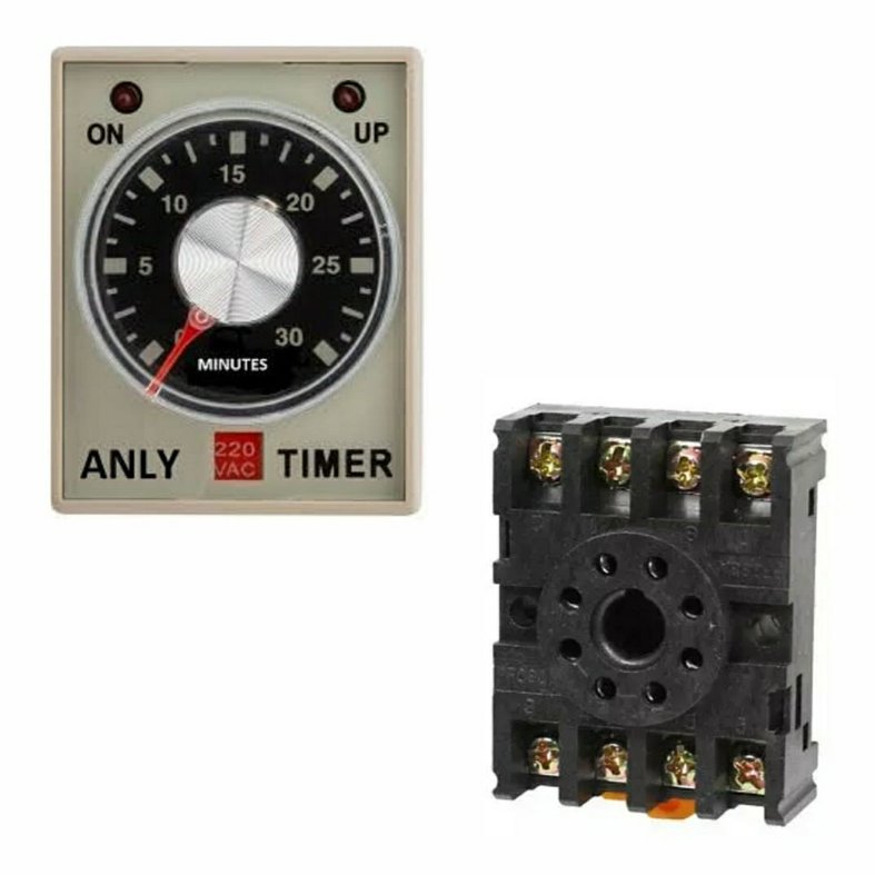 Adjustable time relay with base, AC 220V.