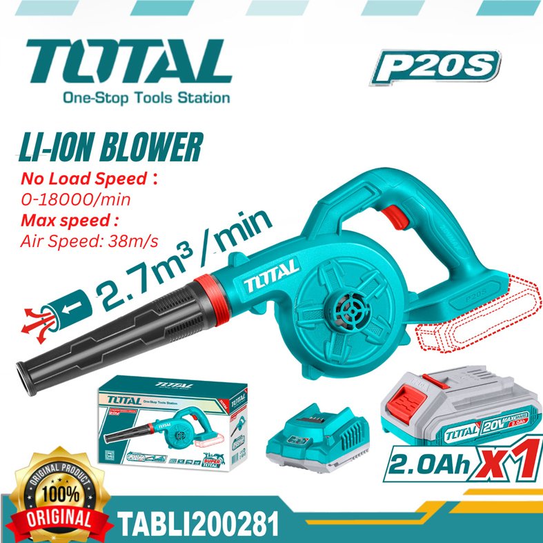 TOTAL 20v Cordless Blower with dual function for cleaning and dust removal.