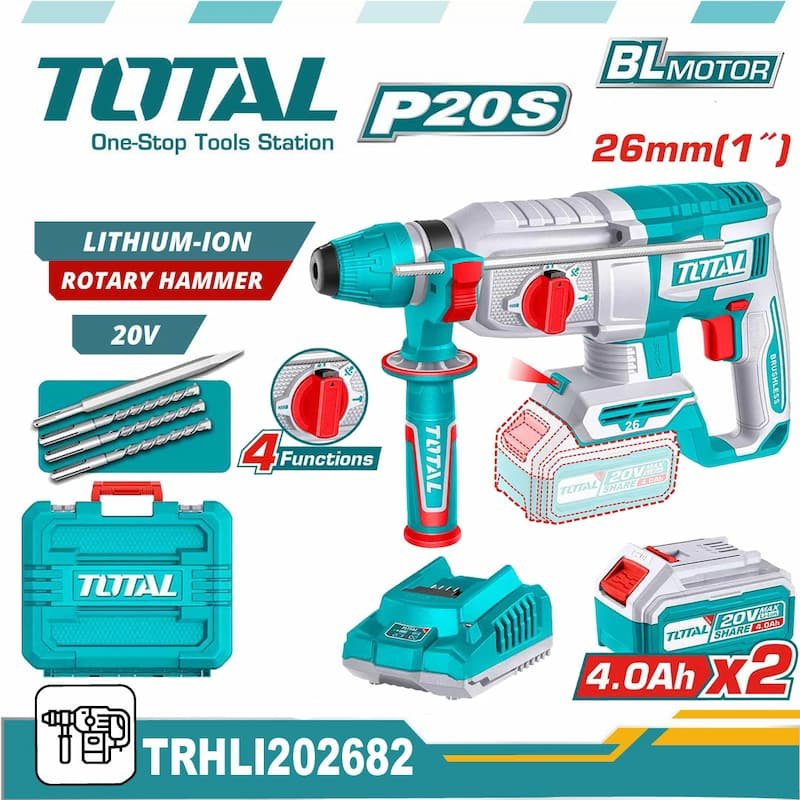 TOTAL 20v Cordless Hammer Drill 26mm for professional and industrial use.