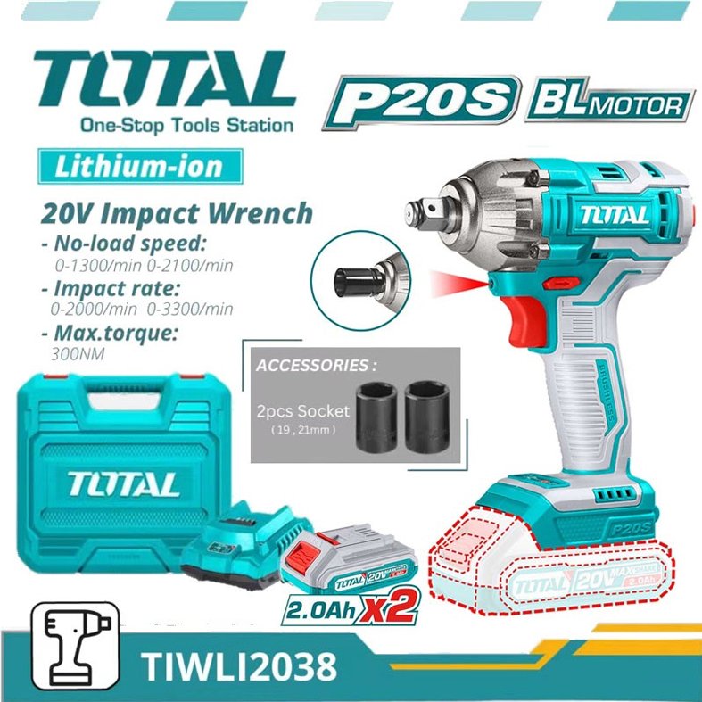 TOTAL 20v Cordless Impact Wrench with 300nm torque for workshop and DIY use.