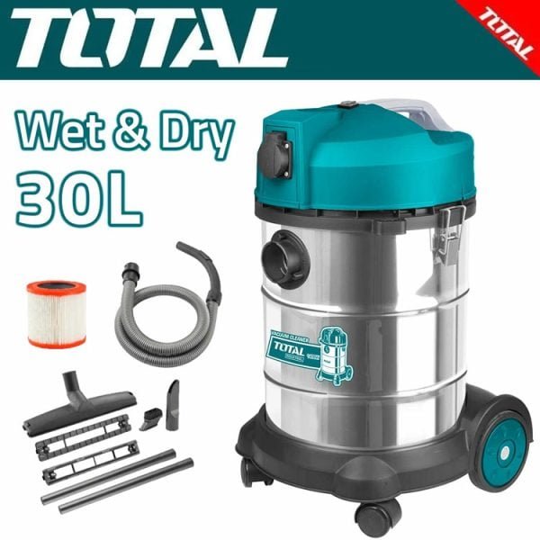 Heavy-duty TOTAL 30L wet and dry vacuum cleaner for workshop and construction cleaning.