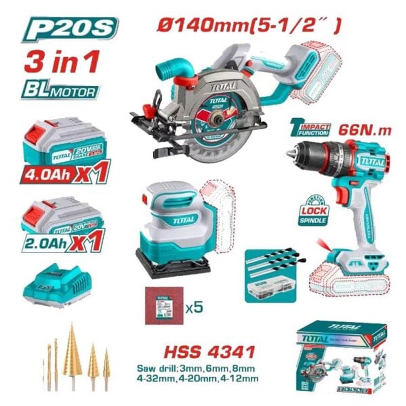 Product Name: TOTAL 3pcs Li-ion Combo Tool Kit